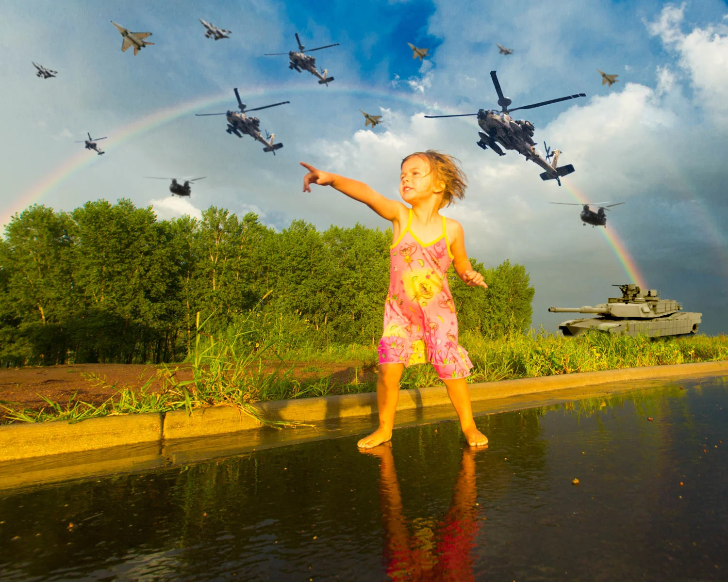 I ran out of the house when I saw a rainbow starting to appear across the street from my house. I looked back and saw my daughter chasing after me. I told her to go back inside because she was in her pajamas and didn't have any shoes on. She didn't listen. I'm glad she didn't listen. After snapping this shot, I posted the picture to Reddit where it quickly went to the coveted #1 slot on the front page. 24 hours later, the picture had been viewed over 3 million times. The best part is countless people have photoshopped it into different scenes. We've been laughing our asses off at some of the pictures people have made. The internet is a wild, hilarious and magical place.